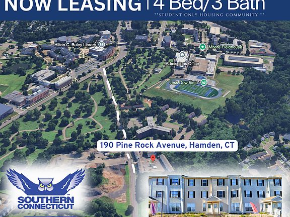 4BR Townhouse with Garage, Plenty Natural Light & Minutes from SCSU - Available NOW, June & August! Pine Rock Townhomes is a Student Only Housing community of 4-bedroom, 3-bathroom townhouses conveniently located minutes from the SCSU campus. This community offers great amenities including in-unit washer and dryer, ample parking including a spacious garage for storage, a short walk to campus and a gated community for added security. The newest off campus housing offering for the SCSU community and nearby colleges, Pine Rock Townhomes is the premier residence for under grad and grad students alike. 4-Beds 3-Baths Living Room Kitchen Private Garage Unit Features: - In-unit laundry - Spacious living area with tons of natural light - Well-equipped kitchen with ample cabinetry - Private garage (no parking, parking lot available) Neighborhood Features: - Minutes from SCSU - Close to public transportation - Nearby restaurants, shops and parks Per Town of Hamden Zoning Laws, this property is designated for student housing. Only applicants who are currently enrolled at an accredited educational institution or recently graduated will be considered. Valid proof of enrollment must be submitted with your application! Good Credit required Application fee is $50 per person Owner Pays Cold Water & Sewer Tennant Pays: Electricity and Wifi
