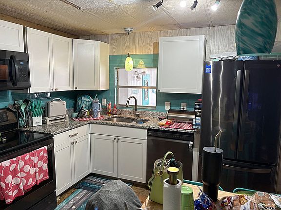 Located in the community of Colony Cove 55+ . Sold As-Is! Home is livable but needs TLC(new flooring). Kitchen cabinets, countertops and backsplash was just done in the last month! Both bathroom vanities have been replaced with cultured marble top vanities! Home has large enclosed Sunroom. Home comes with washer and dryer and all kitchen appliances! Lot rent is just short of $1100/month! $15K OBO