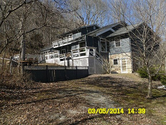 Large home with three levels with a great rustic setting in the mountians. This home has 5 bedrooms, and large spacious rooms on all levels. wood burning stove, lots of deck space on 2 sides of home to enjoy the beautiful scenery. Covered front porch. Heat Pump for heating and cooling. All appliances convey.Large recreatioal room on lower level, fireplace in Living room