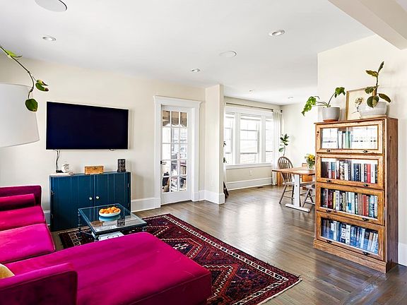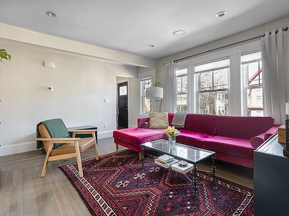 Newly renovated in 2022, this 2 Bed 2 Bath first floor unit is move in ready. Great flow with an abundance of natural and recessed light. Enjoy the built in surround sound system throughout. Two gorgeous full bathrooms and a modern kitchen with stainless steel appliances and quartz counter tops. Enjoy coffee on your back porch and shared yard and garden area. There is a sunny bonus room off the living room that is currently being used as a home office. Private room in basement with laundry and plenty of storage space. Easy living just minutes to Roslindale center and the commuter rail station.