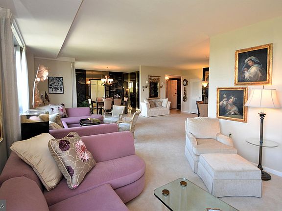Beautiful corner unit in 191 with 2 bedrooms, 2 full bathrooms and incredible open spaces, fabulous for entertaining and living. This unit was a 3-bedroom unit that was converted into 2. The Marble entrance foyer welcomes you into this spacious open floor plan with 3 living areas, 3 seating areas, a large formal dining room with a marble floor, generous built-ins and sliding glass doors to a terrace that overlooks the pool, tennis court and treetops. The large galley kitchen has a cozy breakfast nook perfect for morning coffee. The master bedroom suite has floor to ceiling mirrored closets, an oversized walk-in closet and a large master bathroom with a stall shower. The second bedroom is currently being used as a den. Additionally, this unit has a hall bathroom with a tub, great closet and storage space, and a washer and dryer. 191 is a full-service, concierge building with a 24-hour doorman, swimming pool, tennis court, fitness room, meeting rooms, playground other 5-star amenities including bus service to local to shopping, restaurants, and more. Located in the award-winning Lower Merion School district, 191 is minutes from Center City, major highways and transportation. 2020-06-23