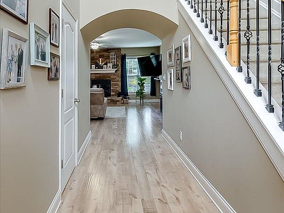 Welcome to this stunning 3-bedroom, 2 1/2-bathroom home ideally situated on the first hole of the Canewood Golf Course. Boasting a captivating two-story entry, this residence welcomes you with elegance and sophistication. As you step inside, you are greeted by an open floor plan that seamlessly integrates the spacious living areas, creating an inviting ambiance perfect for both relaxing evenings and entertaining guests. The abundance of natural light flooding through the windows accentuates the beautiful architectural details and enhances the airy feel of the home.