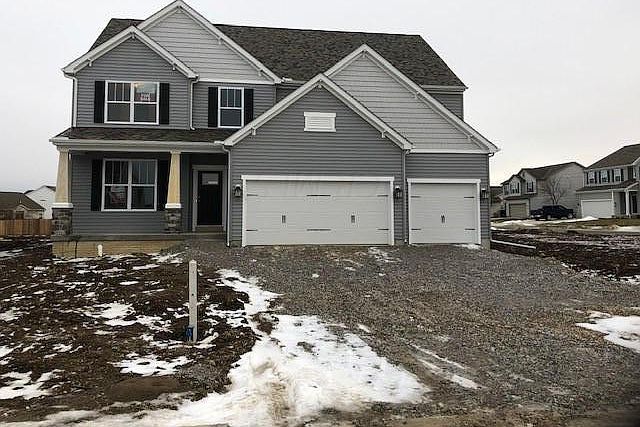 New construction in beautiful Chestnut Commons. This 5 bedroom, 3 baths has oversized 3 car garage & expanded basement will never leave you short on space. Entertaining is ideal in the upgraded kitchen w/quartz countertops, 3rd upgrade grey cabinets and customized space for a double wall oven. The great room, kitchen and sunroom all flow perfectly, creating the open concept that your heart desires. Stay warm next to the fireplace in the GR. Additional features include a den/office, mudroom w/boot bench (w/built in storage), & wood spindles. The open loft upstairs is the perfect play/game rm or office. The owners suite w/private bath & W/I shower w/tile surround & built in seat will have you feeling like you're at the spa! Don't miss this one of a kind beauty!