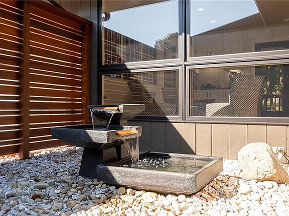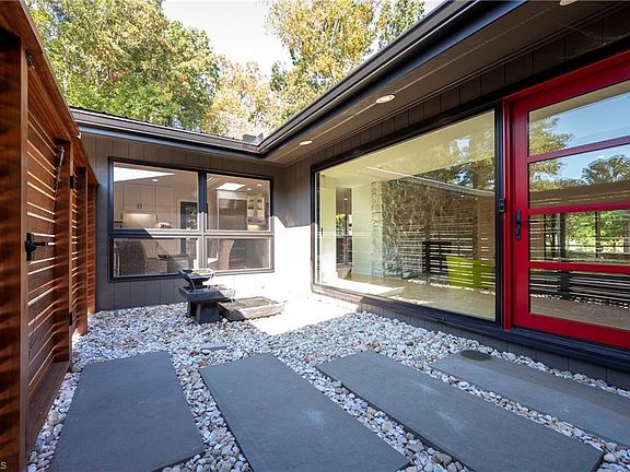 One level contemporary home in Bermuda Run located on hole #12. Designed by Henry Dole Norris this home was Better Homes and Gardens 1972 Reader's Choice recipient. 191 Riverbend has been meticulously updated with every modern convenience while preserving its Modernist character. Custom tiled baths with heated floors, pristine cabinetry with solid surface tops, SubZero and Wolf appliance package with Fishel & Paykel dishwasher, clear grade natural maple floors, solid core doors on the main level, oversized waterfall island, flex space for dining and keeping room, and large floor to ceiling windows that provide lots of natural sunlight. Below there is a large den with fireplace, kitchen, bedroom and bath and exercise room- all completely updated. The exterior is rock and wood with a beautiful African Sapele courtyard to welcome you. This is a 1 acre lot located on the original 18 holes in BRCC. No membership is required. Easy access to both Atrium and Novant hospitals and I-40!