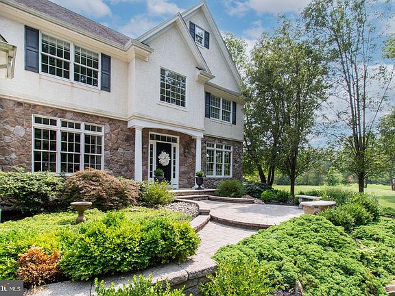 Revel in understated elegance and peaceful tranquility in this Hopewell Homes custom built home on about 4.5 acre lot ( half is allowed to sustain in a natural environment. ) Beautiful woodwork—a coffered ceiling in the living room, crown molding in all rooms, gleaming hardwood floors nearly throughout—and amply sized daylight windows, speak to the meticulous attention to detail given by the owners who built the home, and who’ve spent the two decades since making carefully selected improvements to raise it from well-appointed to stunning. Welcoming two story entry foyer is flanked by an office with built in custom bookcases and cabinetry and a living room with wrap-around windows, perfect for viewing the splendor of the seasons The eat-in kitchen features an 8-foot island with seating, travertine floors, cherry cabinets, granite countertops, an induction stove and stainless steel appliances. Large-paned sliders frame a view of meadows, a pergola and a brick paver terrace. The 2-story family room features a wall of windows and a stone fireplace that stretches to the ceiling. Finishing the first level are a powder room, mud/laundry room entry from the attached 2-car garage. A turned staircase leads to the second level, where 3 bedrooms share a recently remodeled bathroom with a spacious glass-doored shower and double vanity. The primary suite, features walnut inlays accenting the polished wood floor and a tray ceiling imparts the elegance of a luxurious hotel. A dressing room and 2 walk-ins offer an array of wardrobe storage options. In the remodeled bath, the ultimate at-home spa experience awaits with the oversized soaking tub and a glass-doored shower. Twin vanities, marble walls and porcelain floor complete the layout. And finally, the hidden treasure: a room tucked cozily beneath the eaves, in use as a home office but perfect for a playroom or nursery with a deep window seat that invites rainy day cuddling and reading. The unfinished basement with Bilco doors, abundant closets and attic with two points of entry provide ample storage. Recent mechanical improvements include a whole-house generator, an electric car charging station, and ozone and water softening systems. Close to the historic river towns of Lambertville and New Hope, as well as commuter routes and train lines to NYC and Philadelphia, this property is sure to tick all the items on your list!