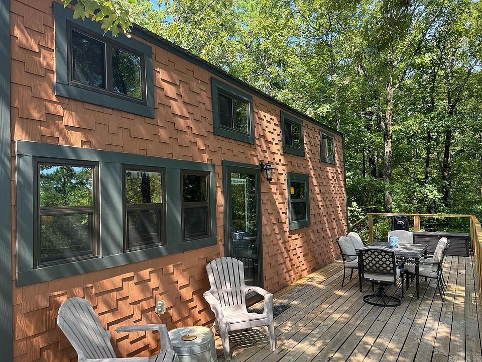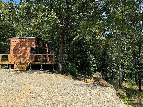 Great opportunity to own a small rustic home with picturesque views! Located 15 minutes from town, this property nestled in the mountains between Lake Maumelle and the Arkansas River offers amazing scenery and wildlife along with wineries, bike trails, and a berry farm right around the corner. Get back to nature as you relax on the wrap around deck while listening to the creek flow below. Invest in an exceptional hunting spot you and your family can use this fall. Two creeks ensure lots of deer and turkey! This custom build with wood walls and ceilings has concrete siding, metal roof, gutters, instant hot water, wood burning stove, propane cooktop, hickory and oak Kitchen counters, tall ceiling in Living room, mini-split, alarm system, City water and septic, all behind a gated entrance. Share the Tiny House experience with your friends as you save on your monthly bills. Whether you're looking for an AirBnB investment property, a getaway from town, or to live the simple life, this property has you covered.