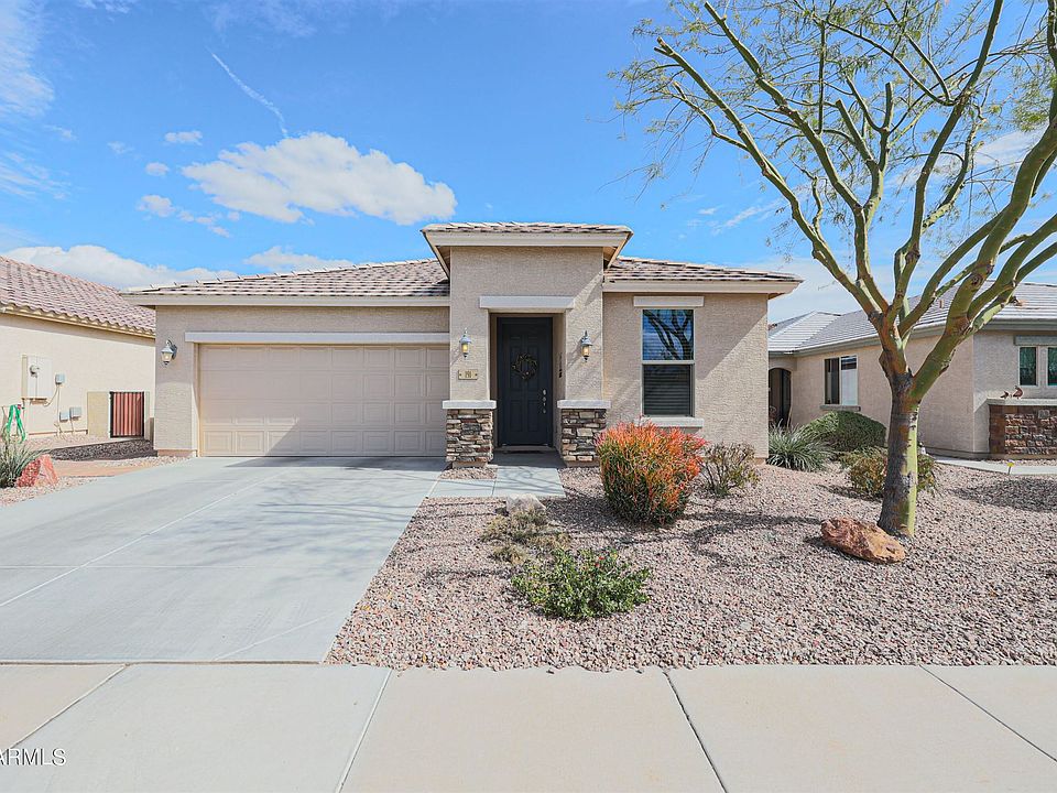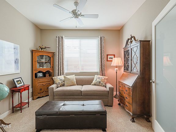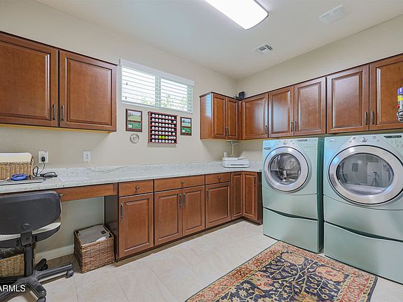 GOLF COURSE LOT! Highly desirable Acacia model with 2 bedrooms and a den with glass French doors. Huge kitchen with a large island, HUGE walk-in pantry, SS appliances, double -oven, and beautiful staggered cabinets with crown molding. The laundry is large enough for an office as well with countertop and plenty of cabinets and storage. New washer and dryer will stay! Backyard is beautifully landscaped along with a covered patio and pavers. It overlooks the golf course while also having a small fencing for privacy and pets. The entire irrigation system was upgraded in 2021. Extended garage has plenty of built-in storage shelves and includes a garage sink! So many other great upgrades to offer including water softener, solar, and spray foam insulation!