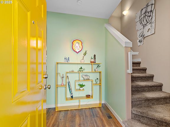 Looking for the perfect blend of modern comfort and small-town charm? This like-new three-bedroom, two and a half-bathroom townhome is ideally located in the heart of historic downtown Saint Helens along the Columbia River. The main level features a spacious open floor plan, high ceilings, large vinyl windows for abundant light, a cozy gas fireplace, and LVT flooring throughout. Down the hall, access the powder room or attached garage. The kitchen is complete with an island, granite countertops, stainless steel appliances, and ample cabinet storage. Upstairs, you’ll find all three bedrooms including the primary suite, the hall bath, and a dedicated laundry room. The primary suite is complete with a walk-in-closet and ensuite with double sinks. The second bedroom offers delightful peekaboo views of the Columbia River, adding a tranquil touch to the space. An attached garage and a fully fenced yard with custom barn doors for discreet trash storage provide added practicality. This thoughtfully designed home combines style, functionality, and spirit. With easy access to local shops, restaurants, and grocery, the location offers unmatched convenience, with a quick commute to downtown Portland too. Don’t miss the chance to own this beautifully designed townhome in an exceptional location with no HOA. Home Warranty included. Walk score 73/100.