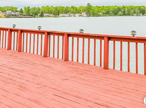 This fantastic 2 bedroom, 1 bath home on private all sports Turk Lake. The family room features knotty pine walls, vaulted ceilings, a feildstone gas log fireplace, two large sliders that lead you out onto the huge deck that offers beautiful views of the lake including the homes 80 ft of sandy frontage. Deck takes you right down to the amazing permanent dock! Kitchen has ceramic tiled floor, snack bar and all appliances are staying. Off of kitchen is a large 3 season room that has a wall heater if you decide to use it year round. Also, off of kitchen there are some built in steps that lead to a small loft area. Main floor utility and no step entrance helps make this home very accessible. 4 ft high full basement for tons of storage along with a 10x12 storage shed across the street on the extra lot. Metal roof approximately 10 years ago and new septic system 2 yrs ago Natural gas. Central air. Has a water softener but has not been used since installing a reverse osmosis system.