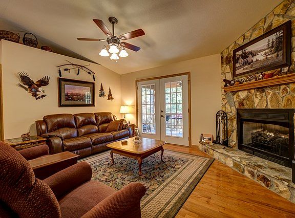 Paradise! Impeccable grounds and exterior; fenced gardens and paved paths connect your storage shed and parklike grounds. Lovely mountain creek flows on the bottom of your property. Enormous lower patio and screened porch with French door access on the main level for enjoying fresh mountain breezes. Off the paved driveway, enter the open-plan heart of the house with seamless kitchen and living room combination. Gleaming black appliances, warm colors, and ample cabinetry entice the cook to enjoy the kitchen. Master suite, guest bed, and full bathroom are on the main. Huge rec room, bath, full laundry room, and pantry/storage are on lower level. Be prepared to be impressed; your home is here!