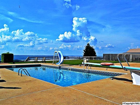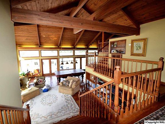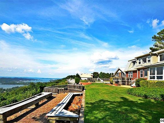 This house is built on two bluff lots but Zillow is unable to list it that way because the lots have separate tax records. So the lot nextdoor to the east is also included with the sale price listed. Zillow could not add on the value of this lot to their estimate of the house for the same reason. This house has an incredible view of the entire Guntersville peninsula from > 5,000 sq/ft of bluff decking. Permanent decking. 4 bedroom (with 3 master suites) 5 bathrooms {3 full,another2 with large tiled showers}. Spacious kitchen with breakfast area overlooking the lake. Features beautiful hardwoods throughout, Great room with 18 ft cathedral ceiling, The great room, 48ftX36ft, is split level with Mexican tile, ceiling to floor glass walls and spectacular views of the lake, includes wet-bar, 2nd kitchen. Lots of built-ins and hidden cabinets. 44x26 {50,000 gal} in-ground pool, 10 feet deep with waterslide and one meter diving board. Cement 1/2 basketball court. This house is a must see! A once in a lifetime opportunity.