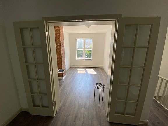 Sunny, freshly renovated 2.5 bedroom apartment in a vintage two family building available September 1st in the vibrant and diverse neighborhood of Bushwick, Brooklyn. The apartment is up one flight of stairs to the top floor with a skylight in the living space; the bathroom has new fixtures and tiles, new floors have been installed and all rooms have been painted. There are two medium bedrooms, one with french doors off the living room for flexible usage. Small additional room with a door is an ideal office space or walk in closet. Conveniently located three blocks from the Wilson L train stop, B20, B60, B26 buses, and a Citibike rack two blocks away. Walkable to bodegas, restaurants, cafes, bars (Father Knows Best, Cafe Pri) and Irving Square Park. Rent from the owners directly: we live on the first floor of the building and are respectful and responsive. $2600 a month, heat included, one month security deposit required, no broker fee. Cats ok, no dogs allowed. No brokers please. Please respond to this listing with some information about who will be living in the apartment to receive information about viewing the apartment.