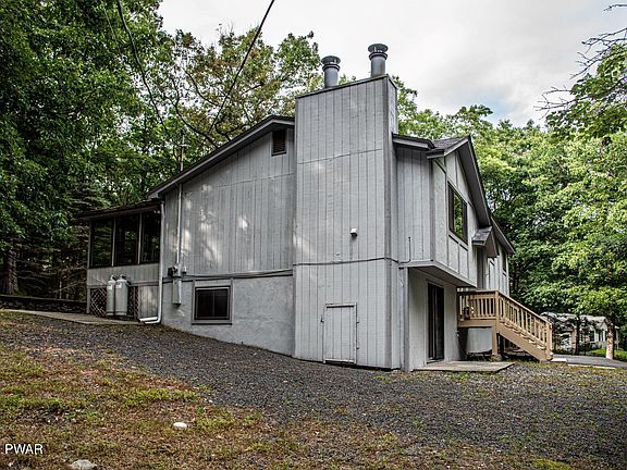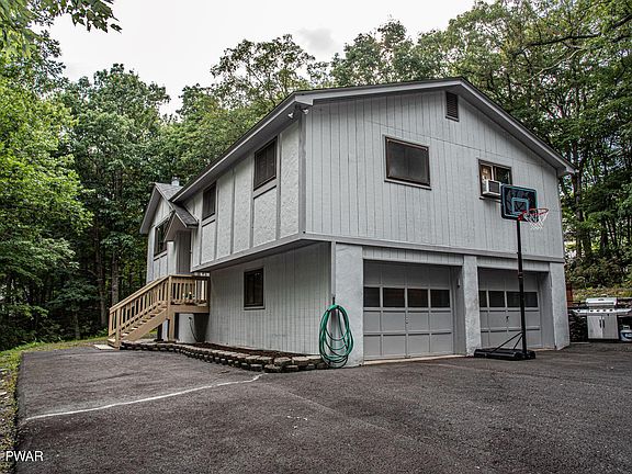 Beautiful Bi-level on 1.68 acres in amenity filled Conashaugh lakes! Come on up the paved driveway to this 3 bedroom 2 bath home! Inside you'll find an open concept living, dining and kitchen. The dining room opens to a large 3 seasons room overlooking the patio and hot tub. The Living room has a large picture window and brick faced wood burning fireplace. Hardwood floors throughout the top level. The master bedroom with built-in dresser adds just a touch of charm. 2 more ample size bedrooms and full bath completes the main floor. Down stairs is a family room with knotty pine accents and coal stove for those chilly nights. Slider opens up to front yard patio. Two car garage built in and another detached 2 story 2 car garage.