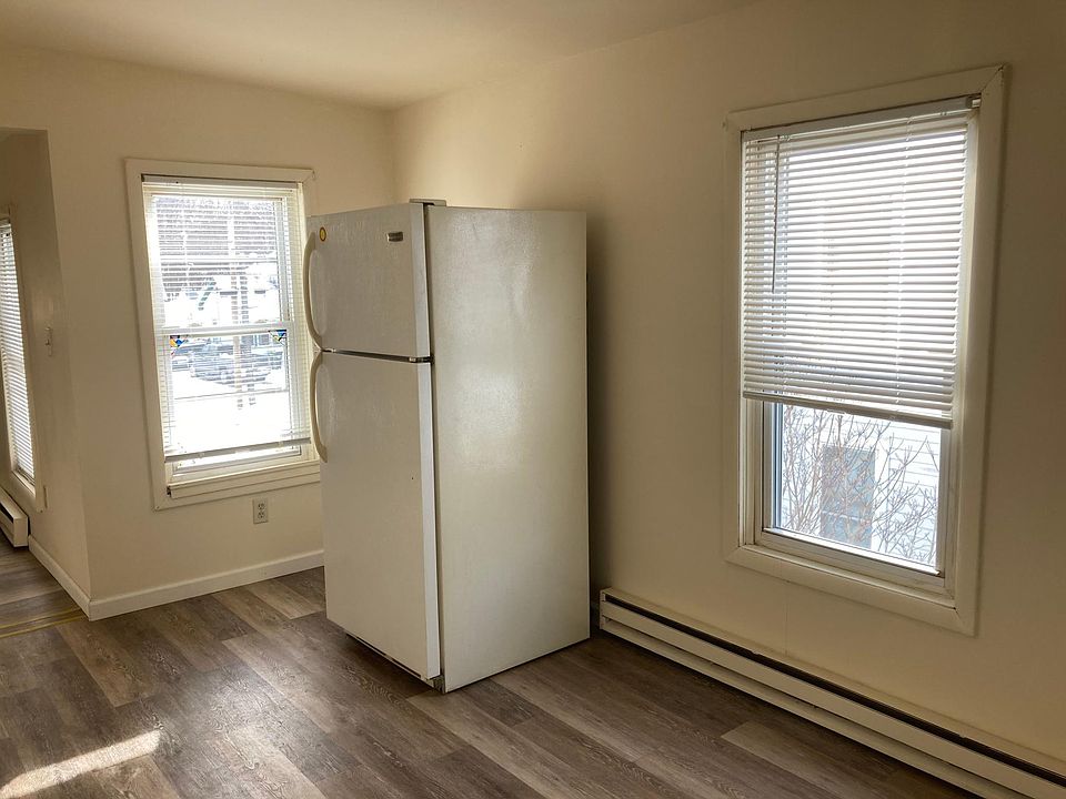 One bedroom upper apartment avail now. New floors, fresh paint and new blinds on all of the white vinyl replacement windows. Nice size bedroom with roomy closet. Eat in kitchen with appliances and storage pantry. Roomy bathroom. Some pets allowed with pet deposit. Off street parking for one car. Locally managed. Month to moth occupancy, tenant pays own gas and electric, cable and internet. Security deposit due at signing. Located on Seymour St between State & Washington. Email, call or text to set up a viewing or for more information. Must provide FULL name and availability in message