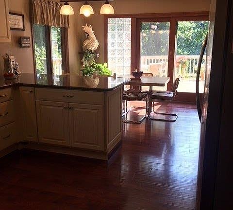 Terrific LAKEFRONT RANCH with 149 ft of shoreline. Open the door to a spectacular open concept great room with stone fireplace and vaulted ceiling. Dining room is part of this open room which is adjacent to the newly remodeled kitchen. Beautiful white cabinets, quartz counter tops, stainless appliances, hand scraped wood floors. Sliding glass doors open to a lovely deck overlooking the large yard and lake. The bedroom wing of the house has 4 generous sized bedrooms. There is a hall bath and ensuite bath in the master bedroom. The walkout lower level includes a large rec room with fireplace and sliding glass doors out the patio. There is a nice office off of the rec room. Down the hall is a bathroom, a fifth bedroom, and at the opposite end of the house a paneled workout/exercise room. Plenty of storage. There is an invisible fence and boat dock with an electric boat lift. Lift is only 3 years old. Enjoy Resort living, boating, skiing, fishing, swimming, tennis, beach, playground.