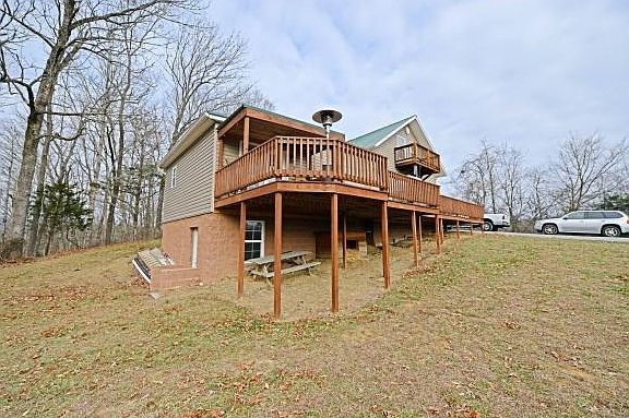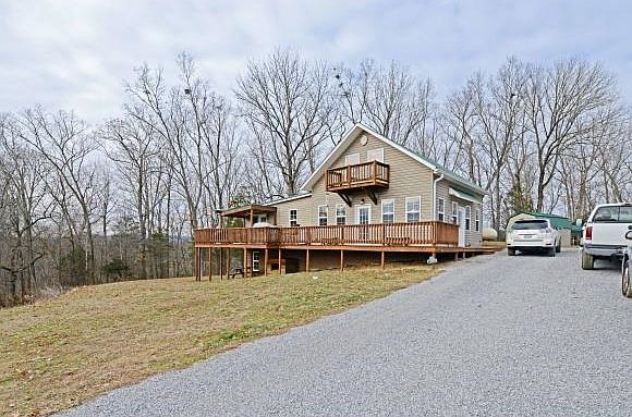 Contemporary 2 story home situated on a beautiful hilltop setting consisting of 7.78 acres. Secluded with gorgeous views. Perfect for a vacation getaway or off the grid living. This home was originally built in 2011 but not completely finished. Present owner purchased in 2012 and added an addition and finished the home on the inside. Many unique features and very energy efficient. Living room with fireplace, custom kitchen with quality cabinetry, stainless appliances, and pantry. Master bedroom and bath on the main level and 2 bedrooms and 1-1/2 baths on the second level. Office and laundry room. Wrap around deck to enjoy the views. Unfinished basement for storage. Storage building and shed. Two septic tanks. 500 gallon propane tank. Wooden window blinds throughout. Convenient to exit 36 & 44 of I-81.