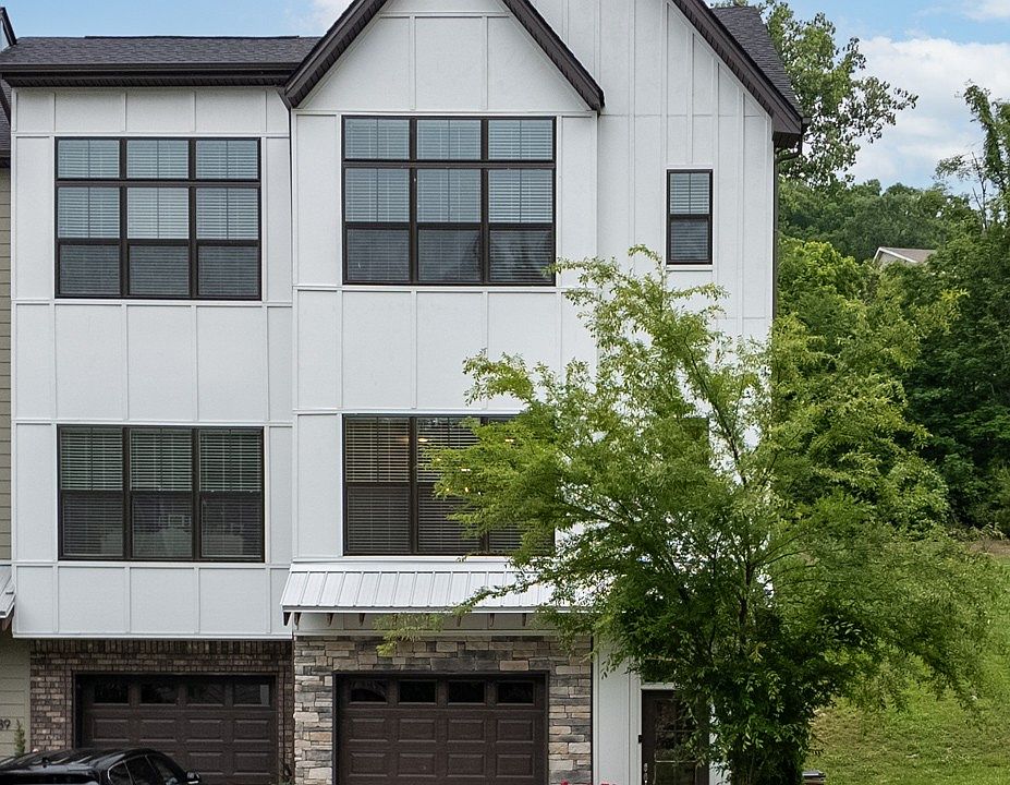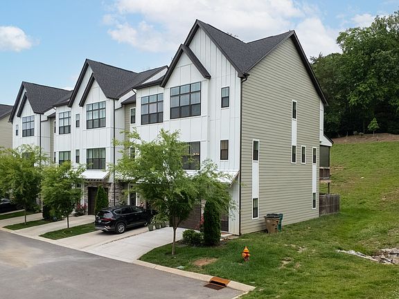 Beautiful end unit townhome with high ceilings and spacious rooms on three levels. You'll love the multiple private outdoor living spaces, open concept gourmet kitchen featuring a glass garage door to open up when the weather is beautiful, plus the downstairs bonus / living room with built-in shelves is perfect for a 3rd bedroom or large office space opening up to a private backyard. Features include: stunning open design, covered patio deck with beautiful hillside views, primary suite with gorgeous bath and large walk-in closet, 2nd upstairs suite with a private bath, and a tranquil living environment that only an end-unit can provide. Enjoy the hardwoods throughout on the main living floors and carpeted bedrooms upstairs. This townhome is close to I-40 for access to all things Nashville. All appliances remain including the washer / dryer.