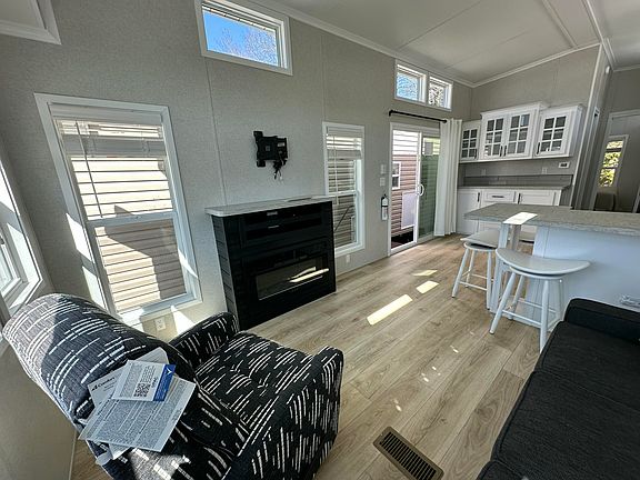Have you been waiting for a park model to come available in sought after Ogunquit Farm RV. Resort? The wait is over! This BRAND NEW 2025 KROPF offers an open concept layout with cathedral ceilings and a NEW 3 season florida room with a deck on the front of the unit allowing a nice place to enjoy your coffee & a good book! The eat in kitchen area is great for all your guests to be in one space together and there are TONS of windows throughout the home allowing for great natural light. There is forced hot air heat for cooler nights & central air conditioning for those hot humid ones. There is also an electric fireplace in the living room & the all new furniture stays with the home! The lot is abutes the woods so you have no neighbors except the birds & wildlife in your back yard. This new home will be ready for the May 9th opening of the park & There are 2 pools at Ogunquit Farm along with a clubhouse with laundry facilities. There is also a basketball court, pickleball court, & dog park! The park is located about 1 1/2 miles to both Ogunquit Beach at Moody & Footbridge Beach in Ogunquit. The park is open from May 9 to October 15 and there are NO RENTALS allowed at the park and 1 pet is allowed with prior approval from the park owner. Park rent is $6,200 per year plus 9% Maine State Lodging Tax and the park rent includes water, sewer, basic cable & wifi. Come take a peek, you won't be disappointed!