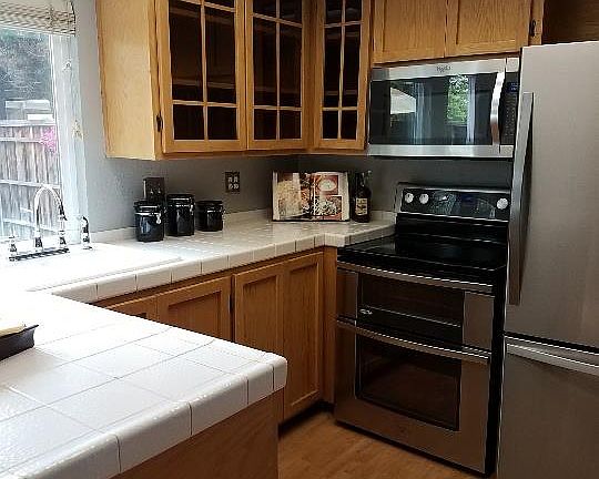 Charming 2 bedroom 1.5 bath Condo beautifully remodeled and perfect for first time homebuyer! The adorable private patio is great place for a summer BBQ. This end unit home features 2 carport spaces with direct access into unit, new interior paint, wood floors, updated kitchen with stainless appliances, inside laundry with newer stack-able full size washer and dryer (included), dual pane windows, panel doors, crown molding, ceiling fans, eat in kitchen and much more. Great location, just minutes away on light rail to downtown SJ, very close to 85/87 highways.
