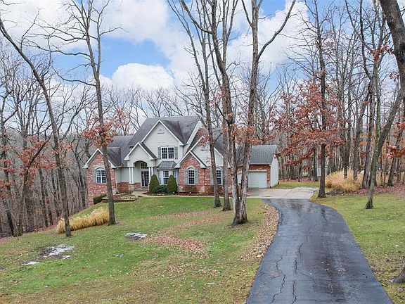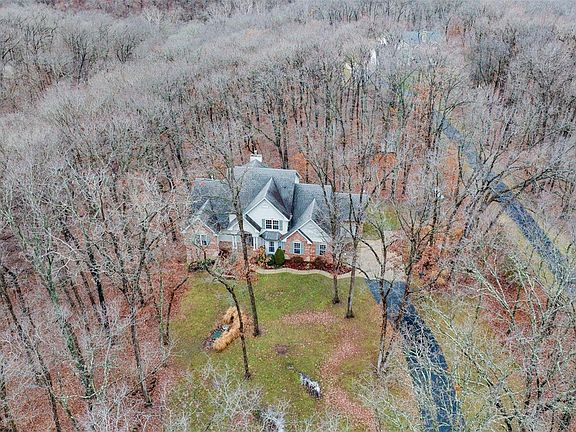 Gorgeous 4 bed 2.5 bath home in tranquil wooded setting on over 3 acres! The open design will take your breath away! Beautiful bright vaulted great room w/custom fireplace & wall of windows. Gleaming wood floors & some carpeting, fabulous white kitchen w/ss appliances & quartz counter tops, huge main floor master w/ensuite bath, soaking tub, 2 vanities and walk in shower. Designer features abound, painted a beautiful airy gray with custom window treatments also provides many areas for relaxing, working, or entertaining! Den/office has additional fireplace and french doors for a conference call or a nice nap, separate large dining room, and charming sunroom. Features 3 generous bedrooms on the upper level w/ full bath & loft area. Spacious patio in back & level area to add a pool if you like! Full basement has tall ceilings, 3 egress windows, walkout and roughed in bath plumbing, ready for your finishes. This home is like a getaway nestled in the woods yet convenient to major highways! Additional Rooms: Sun Room