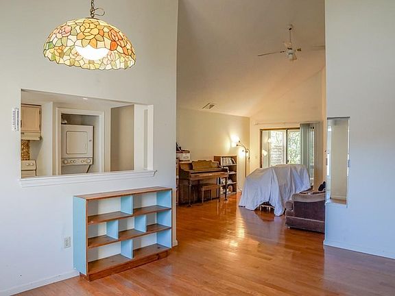 Spacious One bedroom condo with open floor plan in the lovely community at Spyglass Hill. Top floor unit features a spacious Living Room/Dining Room with hardwood floors and cathedral ceiling. Slider to private Deck. Eat in Kitchen with opening to Living Room and Dining Room has electric stove and dishwasher. Breakfast area with skylights. Oversized bedroom with bath and oversized closet area. Additional Slider to Private Covered Deck. Stackable washer and Dryer in Unit. Oversized detached garage. Sold as is. This one bedroom unit has not been updated and seals on many windows are broken. Needs Paint . Gas Heat Central Air. Convenient to Shopping and Commuter Rail. Tired of paying rent . This unit is for you..