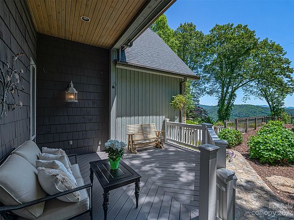 Welcome to this magnificent home offering breathtaking views, conveniently located just 7 minutes from vibrant South Asheville. Enjoy dazzling sunsets over the Blue Ridge Mountains and Lake Julian from the expanded deck. The great room, kitchen, dining room, and primary suite are filled with natural light and showcase panoramic long-range views through expansive windows. Perfect for entertaining, this home has it all: A spacious kitchen and separate beverage bar, a home movie theatre, fitness room, and outdoor hot tub. On the main level, a formal study with built-ins offers a dedicated workspace and fiber-optic internet connectivity. The lower level features a family room, two guest bedrooms, and a charming cabin-style room with an electric gas stove. The exercise room includes gym floor mats and connects to the home movie theater. Updates include granite counters, and large custom walk-in closet in the primary suite. Don't miss the opportunity to own this remarkable property!
