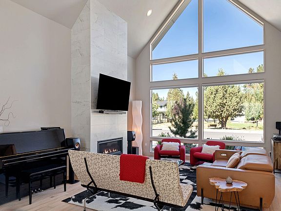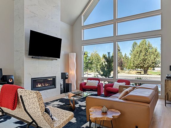 One step inside & you'll fall in love with this exceptional modern home in the desirable ClearPine neighborhood in the heart of Sisters. Custom built by Yelas Construction with numerous upgrades including designer lighting & hardwood floors throughout. The stunning great room boasts soaring vaulted ceilings, expansive windows & a floor-to-ceiling fireplace, all overlooking the community park. The gourmet kitchen features custom cabinetry, quartz countertops, a prominent island & a stylish bar with wine cooler. The primary suite offers radiant heated bathroom floors, a luxury tiled shower, & a walk-in closet, while the guest bath features a large soaking tub with shower and a spacious vanity. The low-maintenance exterior includes a private courtyard patio and gated dog run. A 2-car garage plus separate RV garage with EV charging outlet provides space for a Sprinter Van, outdoor gear, or hobby/music room, plus attic storage. All within close distance to Sisters' shops and restaurants.