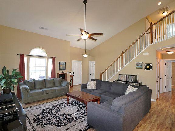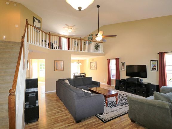 Great home with open floor plan with cathedral ceilings. Laminate flooring throughout downstairs. Master bedroom on the main. Large loft/den upstairs with a closet, could be used as a 4th bedroom. 2 car garage. Fully fenced in back yard with large hot tub to relax in. Newer HVAC 2019. The neighborhood amenities include a pool, clubhouse, pond, and playground. There is a boat landing minutes away. Award winning schools!!!