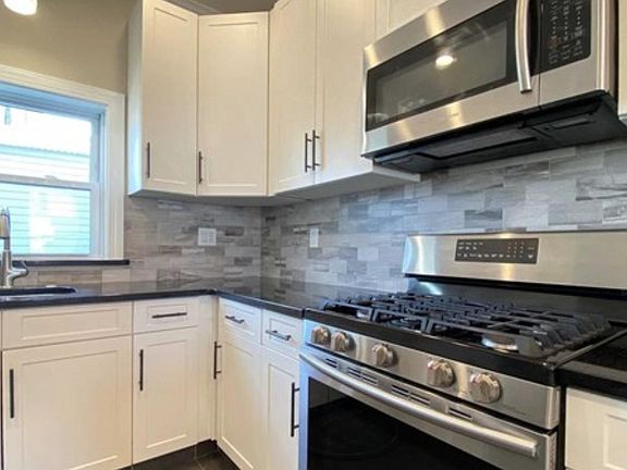 Beautifully renovated 2 bedroom/1bath apartment close to NYC transportation. Soaring 9.5ft ceilings with crown moldings, high hat lighting, and gleaming hardwood floors. Custom made entertainment center in the living room, chef's kitchen with granite countertops and barstool seating, inviting dining room area with open concept into a large living room. Spa inspired full bath. This apartment is absolutely spotless! Access to separate laundry units in the finished basement. Street parking only. Separate utilities. No pets. Renter responsible for gas and electric. Non-smoking. Street parking available. Small pets may be considered.