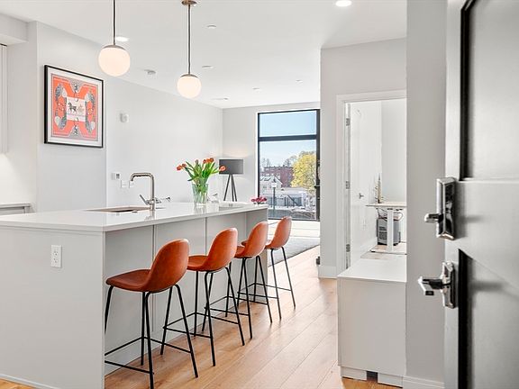 This modern, sun-splashed 2 Bedroom / 2 Bath condo with deeded garage parking located at the newly constructed Stratus is full of amenities and luxury. .This gorgeous unit includes open floor plan, top of the line quartz and stainless kitchen, quartz bathrooms and front facing views looking out floor to ceiling windows from all rooms. Includes primary bedroom with walk-in closet and gorgeous designer bathroom w/ double vanity and tiled walk-in shower, open floor plan kitchen and living room and another bedroom with adjacent full bath. Features include hardwood floors, central air and heat, in-unit washer dryer. Includes upgrade of private locked large storage closet on same floor. With on site property management, doorman concierge, roof deck and sky lounge, multiple fully equipped common spaces, work spaces, full gym exercise room, bike storage, pet spa and more, the building and location make for easy Boston living. Close proximity to B and C lines, Storrow Drive, BU and BC.