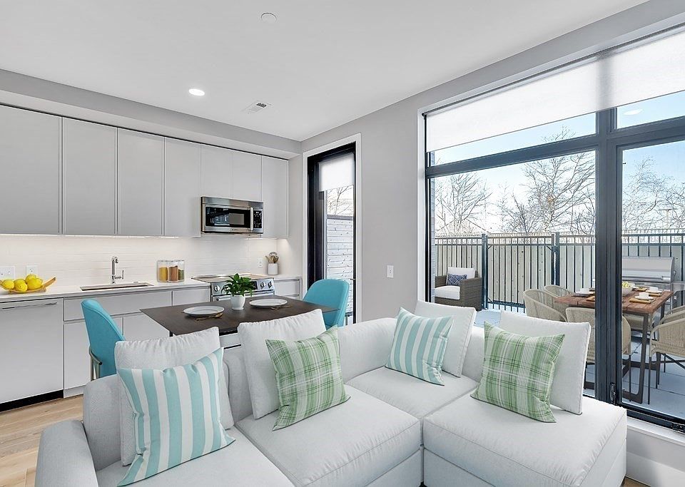 Brand new luxury junior 1 bedroom at Stratus in Brighton is one of the few homes in the complex designed with a huge private patio which leads to additional common outdoor space. White kitchen has Bosch appliances including paneled refrigerator and dishwasher, and a stainless range and microwave. Wood flooring, In-unit laundry, Central AC, and bathroom with tiled shower and storage. Building amenities include Concierge, Fitness Center, Sauna, Pool, Library, Large Common Terrace with Grilling Station and Fire Pits on 3rd floor and Sky Lounge, Roof Deck and Game Lounge on 6th floor. Close to Whole Foods and the green line MBTA.