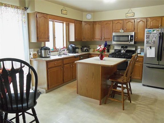Spacious home...Fredonia schools...3 beds...2.5 baths ...master bedroom has new master bathroom with a beautiful walk in tile shower and 3 spacious closets....spacious living and dining rooms with brand new flooring...eat in kitchen w/island,new patio door & window, stainless appliances,main floor has a 1/2 bath and 2 full baths up....partially finished rec-room in basement....attached 2 car-garage...concrete driveway...large yard...front porch, large patio with awning & 1/2 court basketball court w/hoop...(Jamestown Awning puts up and takes down awning, the cost is $200 per year it is paid in full for 2019)