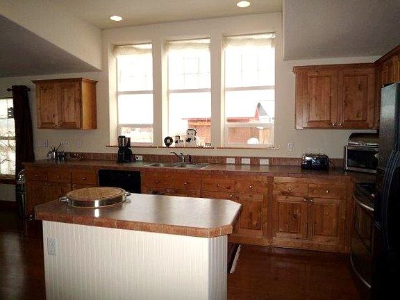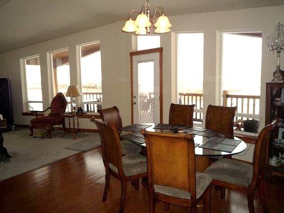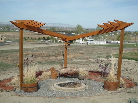 Gorgeous home with views in every direction. This home has a warm cabin like feel with knotty woodwork throughout. The entryways are wide with wide hallways and the ceilings are vaulted. The home has custom features with double closets in the master suite and access outside to a private patio looking out to the Horse Heaven Hills. There is a log pillar deck over looking the terraced yard and fire pit seating area. The property has a paved walkway and cement curbing around the landscape. Ornamental plants are throughout the yard with a drip system.