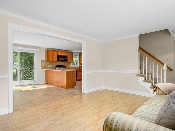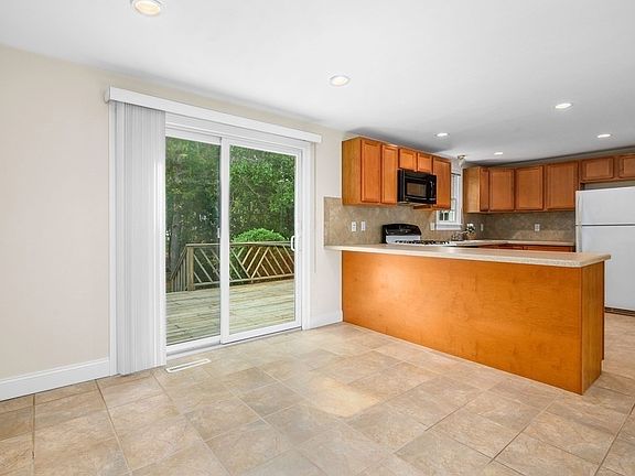 This sweet cape style house with an attached garage is located on a cul-de-sac, in a convenient and desirable location. Situated just minutes away from beautiful beaches, and popular dining & shopping destinations. Inside you will find a total of three bedrooms, including a first floor bedroom and adjacent bathroom with laundry. The main living area features a bright and open floor plan, seamlessly connecting the living room, dining area, and kitchen. Upstairs, two front to back bedrooms share the second full bathroom. There is a full basement and unfinished room over the garage, which offers endless possibilities for customization. Outside, a large deck overlooks the spacious level yard, and provides the perfect spot for outdoor relaxation and entertaining. The house has been nicely maintained and recently painted inside and out. It is connected to town water and town sewer. This is a perfect year round or vacation home. Experience Cape Cod living at its best!