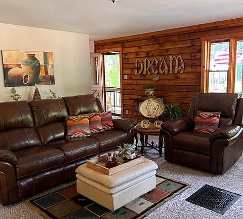 Your dream comes true living in this immaculately maintained 1,500 SF log cabin with LR, DR, three bedrooms, two baths, a brick, wood burning fireplace with mantle and hearth, stainless steel kitchen with oak cabinetry, a door from the kitchen leading to an outside deck, front porch which expands the full length of the house and a full 1,500 SF basement that includes a washer & dryer, built-in wooden shelving, steel shelving unit, & two work benches. Morning coffee on your front porch is a treat, while your quiet evenings can be spent on the back deck, where mother nature provides a tranquil place to grill and relax. What's been done? The exterior was completely re-stained in 2018; the front & back decks were recently painted; a new well pump and all electrical wiring were installed in 2022; a new hot water tank and pressure tank were installed in 2022, and a new condensation pump in 2023. Our community, Shannondale, is nestled between the Shenandoah River and the Appalachian Trail on the western slope of the Blue Ridge Mountains. Dulles Airport is 47 minutes away, and the Marc Train is a 17-minute ride. Those new to West Virginia will discover the extraordinary beauty of the state with its majestic mountains, rivers, hiking trails, and many country roads to explore.