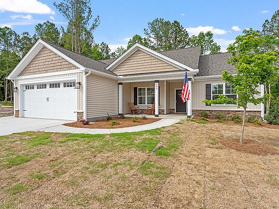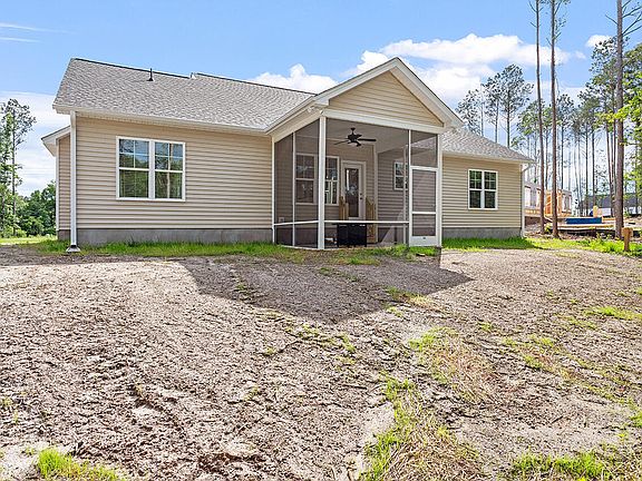 MOVE IN READY!!! 1.4 ACRE lot!!! Due to job relocation, this GORGEOUS home has only been occupied for one month! Completed in April 2024, this beautiful ranch has an open floor plan, spacious living room, granite countertops, SS appliances (including new SS refrigerator). Home has been outfitted with new blinds. Owner's suite has dual vanities, large shower, and walk in closet. 2 additional bedrooms with a full bath and tub/shower combo. Large backyard, screened and covered porch, perfect for entertaining~! Close to Hwy70 and I95! Just 10 min from the outlets.