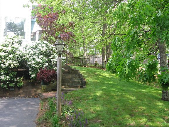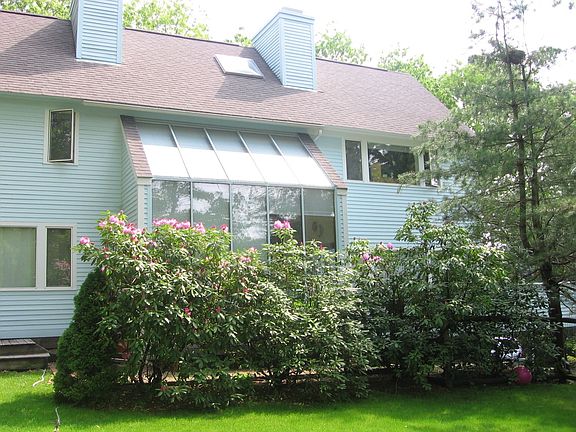 Sun-filled contemporary with soaring ceilings nestled on over an acre of private wooded land with a fenced backyard. The home boasts a solarium breakfast room, rich hued oak kitchen, recessed lighting, and a master bedroom with a cathedral ceiling and ensuite bath with jet tub. The family room offers built-ins and a wood stove. All this in a quiet neighborhood setting.