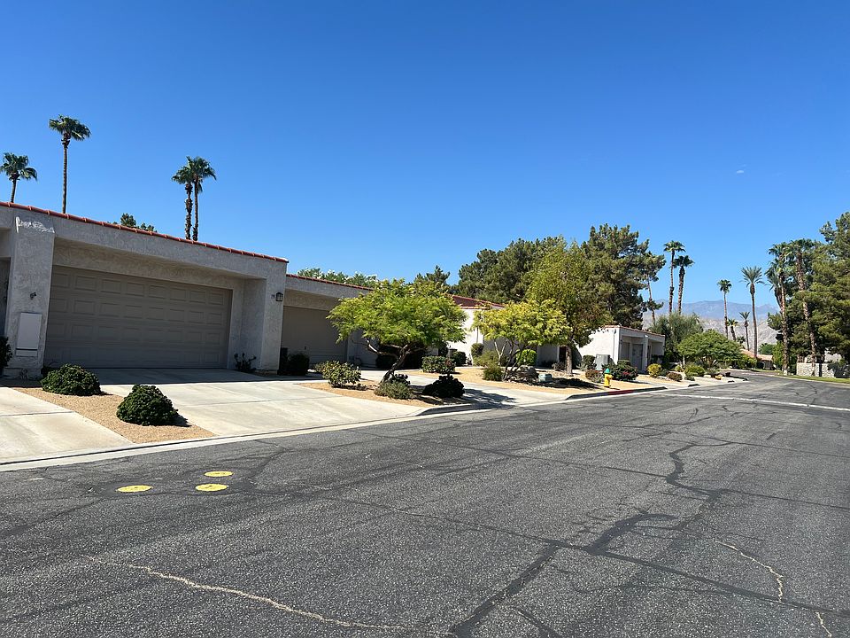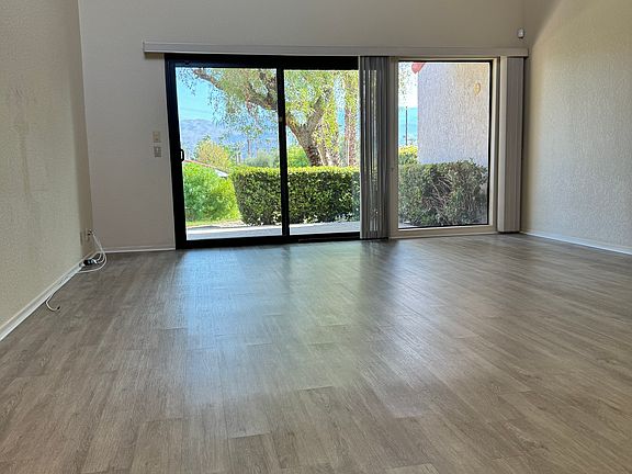 Now available, this beautiful unfurnished condo is in a secluded gated community located in the heart of Palm Desert, with south facing patio to enjoy picturesque views of our spectacular mountains. Entered through a private gated courtyard and featuring 2 bedrooms, one well located to be used as an office, 2 baths, lovely LVP flooring in all rooms except bedrooms, and a 2 car oversized garage, it's the perfect home for busy professionals or youthful retirees. All areas are very roomy and light, and the view from the living room and master bedroom is beautiful. It even has a built in whole house vacuum. Lighted pickleball, tennis courts and spa just steps outside your door. Well located near Country Club and Portola, it's very close to McCallum Theatre, our world famous El Paseo and the Acrisure Arena. This is the prime unit in this community, selected by the builder as his own. You don't look into anyone else's condo, but instead have a lovely pool, lawn and mountain view. Units in this community are seldom available, as most residents are very long term owners. Small dog on approval. A non smoking home. A perfect place to call home! Minimum rental term 1 year. Owner pays for water, trash and sewer. 1 small dog on approval, with additional refundable deposit.
