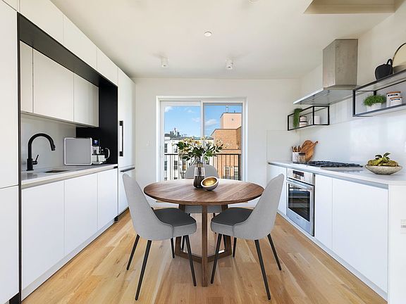 Welcome to Penthouse 4 at 191 Withers Street, a sun flooded one-of-a-kind full floor two-bedroom / two-bathroom with a massive private roofdeck, two terraces and Manhattan view. As soon as the elevator opens up right into your stunning Penthouse, you are greeted with treetop views and streaming sunlight from both Southern and Eastern exposures. This 42' wide Penthouse offers a loft-like open layout that features a gorgeous and spacious living and dining area with an open designer kitchen leading to a private terrace with Manhattan views, a south facing master-suite with a large walk-in-closet and an elegant windowed bathroom and a spacious second bedroom with a private balcony and Manhattan views. Best of all is the beautiful staircase which will take you up directly to your private 508 Square Feet finished roof deck with expensive Manhattan views. Your Penthouse is elegantly designed and finished to the highest standard, with white select Oak hardwood floor, Mitsubishi split HVAC system, Pella windows, sleek European kitchen cabinets with white quartz countertops and top of the line appliances including stackable private Washer/Dryer that complete your perfect home. 191 Withers is surrounded by restaurants, bars, cafes, and shops near Graham and Metropolitan Avenues. Cooper Park and McCarren Park are just a few minutes away and offer a wealth of activities, including a farmers' market on Sundays, a playground and a lively dog-run. Do not miss this unique opportunity to live on a serene residential block just minutes from all the exciting attractions that Williamsburg has to offer and just 3 subway stops from Manhattan. Contact us today to schedule a private showing. This is not an offering. The complete offering terms are in an offering plan available from File No. CD19-0055.