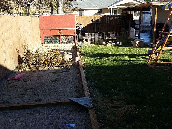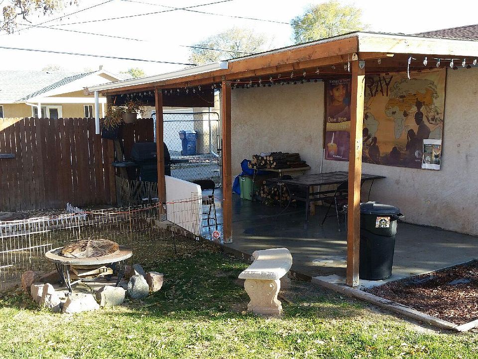 Just walk right in ! This great home is move in ready. Newly remodeled kitchen. Newer carpets and tile floors. Great location with a huge yard (including a chicken coop) Kitchen has a breakfast bar and open to the living room . Tons of storage space: Kitchen pantry, large closets in all bedrooms plus coat closet. One car detached garage has alley access. Fire pit in back and covered back patio with lights also large open patio. Childs play set stays too! Property is totally fenced for child safety. Also has motion censor lighting all around the home. New roof evap. cooler and new furnace. Roof 2011 and stucco in 2013. Home is conveniently located close to schools and shopping and bus route if needed. Must see call today !