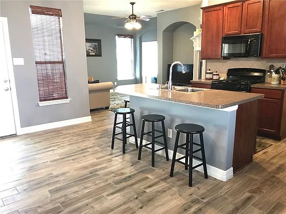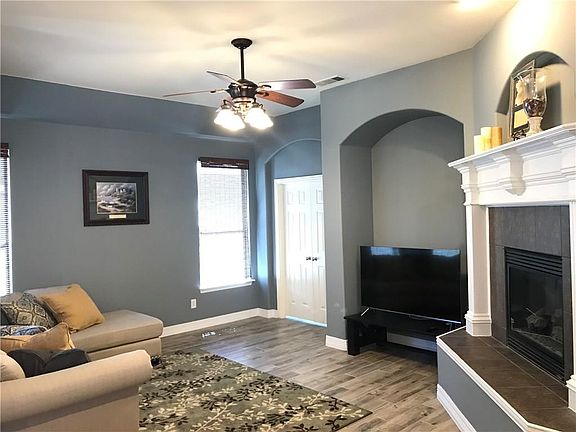 Beautiful open floor plan home with 10 ft ceilings, wood grain ceramic tile flooring, and fresh paint. Living room has raised fireplace with gas logs. Second living can serve as a study. Master suite features jetted garden tub and separate vanities. Front covered porch and covered patio are a plus for enjoying BBQ's and relaxing.This home is located in a master plan community with luxurious amenities such as: baseball, basketball, multiple soccer fields, lakes, pools, a spray park, play structures, four tennis courts, miles of walking trails, sand volleyball.