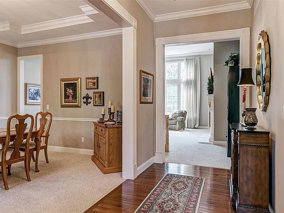 Open House cancelled-Under Contract. Sophisticated Ranch Villa with Polished Detail throughout. The dining room w/9 ft. coffered ceiling, crown molding,chair rail, & cased openings. Soaring 13 ft ceiling in the Great room has lots of light w/transom windows. Great rm open to the Kitchen & Breakfast rm. Oversized Island, Maple Cabinets, Dacor 5 burner gas cooktop, range hood, quartz counters, walk-in pantry & planning desk. Main Flr Laundry w/cabinets & counter. Lavish Master Suite has an updated Luxury Bath & walk-in closet. Bedroom #2 on the main level w/private bath. LL Family room w/ built-in bookcases, gas fireplace, walk behind wet bar & walk-out to Patio. Bedroom #3 Guest Suite w/private bath. Bedroom #4 being used as an office & full bath. Plenty of storage!! 2 car garage is drywalled and painted. HVAC replaced in 2016. Beautiful epoxy pebble front porch and walkway. So Many upgrades & replacements, Custom Draperies just finish everything off!! Home Warranty-Fidelity National.