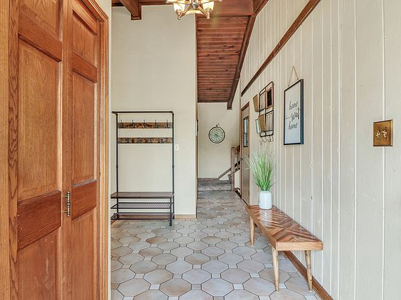 Step into a home with CHARACTER and beauty. This tri-level is not your ordinary layout. As you enter, you're greeted with a large foyer with custom tile floors and vaulted ceilings. Step down into the cozy living room that features a floor-to-ceiling stone fireplace and wood plank ceiling with wood beams. Large window fills the room with light and large space allows for a multi-functional space. Designated dining space is elevated to capture the backyard beauty or enjoy dinner by the fire. Large kitchen allows for chef inspired meals! Quartz countertops, TONS of cabinets, farm style sink and picturesque window. Separate coffee bar nook, lots of prep space and NEW refrigerator. Upstairs hosts 3 well-sided bedrooms and full bath. ALL NEW DOORS AND TRIM! Master bedroom features 2 closets and remodeled master bath. Detailed tile shower, new vanity and beautiful stone tile floors. Lower level offers a 2nd large living space and wood burning fireplace. 4th bedroom is currently being used as a gym space but has HUGE attached closet/storage room. Lower level is home to a 1/2 bath, laundry room, large pantry shelving unit and exterior access to the backyard. Outside checks all the boxes too! Stained back deck is accessible from the kitchen so you can fire up all the grills! Fully fenced in backyard with NEW brick paver patio! Custom firepit and lots of seating area for entertainment. Large shed and a great, usable backyard. A must see to appreciate! PLUS the LOCATION! Johnsburg offers a small town feel with UTV access. You are located down the street from top rated schools, parks and entertainment. You will love it here!