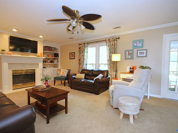 • Features: Ceiling Fan(s), Crown Molding, Carpet, Fireplace