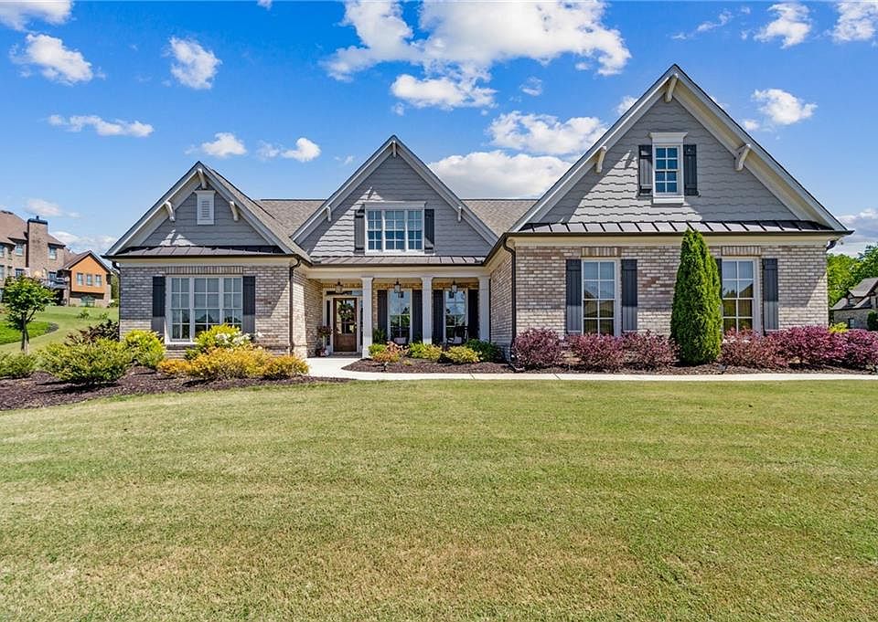 The Sterling Plan built by Tipton Home builders. Gorgeous ranch plan w/ 4 bedrooms/3.5 bathrooms, family room w/ brick fireplace & cedar mantle, & a beautiful coffered ceiling. The chef's kitchen features painted cabinets w/ a large island, quartz countertops, SS appliances w/ double ovens, farm sink, subway tile backsplash & butler's pantry! Master on main w/ large bath & HUGE 6x4 shower! Covered rear porch w/ brick fireplace, extended patio, fully fenced backyard, guest bedroom upstairs w/ additional full bath, 3rd car garage & a nice level and private lot! Gated neighborhood! Perfect lot for a pool!