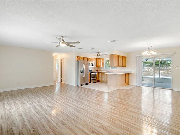 FANTASTIC OPPORTUNITY to own this wonderful POOL HOME on over 1/3 acre, with no HOA, in a quaint CUL DE SAC. Highlights of this home include easy care VINYL PLANK FLOORING in the main living areas, updated CUSTOM KITCHEN with newer STAINLESS APPLIANCES, wood cabinets complete with pullout drawers, Lazy Susan, and cabinet doors that conveniently open to the family size Dining Room, DOUBLE PANE INSULATED WINDOWS throughout and brand new ELECTRICAL PANEL. Step outside the Dining Room or MASTER SLIDERS to another living space in the SPACIOUS SCREENED PORCH nicely finished with ceramic tile, and take in the beautiful TROPICAL POOL. Enjoy the tremendous space, and privacy of your own backyard, with many options on this completely fenced yard which features an oversized side gate for easy access of your favorite sports vehicles and equipment. Extra Large Storage shed for all your pool/lawn or sports equipment. Excellent location, plenty of nearby shopping, walk to Bus Line, minutes to Saxon, 10 minutes to I-4 and 30 minutes to the beach! Hurry! Take advantage of this excellent value today!