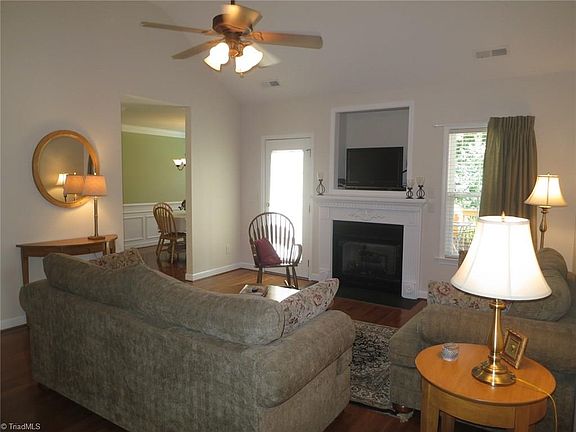 Warm & inviting one level home in pristine condition! Huge living room with vaulted ceilings & gas log fireplace-ten foot ceilings in foyer-lovely hardwood floors & detailed mouldings-formal dining rm-galley style eat in kitchen with built-in bench seats, spacious cabinetry & pantry cabinet-master suite features tray ceiling & walk in closet-soaking tub/separate shower & double vanities in master bath-vaulted ceiling in second bedroom-private & wooded rear yard-so much to love about this house! HSA Warr.