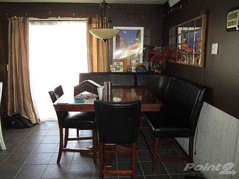 All one level living. Kitchen has tile flooring and back splash. Maple cabinets and maple flooring. Kitchen opens into dining room and living area. Master bedroom has double closets and garden doors to exterior. Master bath has double sinks, heat lamp, fan and tile flooring. Living room has bay window and newer carpet. Wood stove in living room. Cove heat and propane wall furnace for back up heat. Large 100 X 130 lot with chain link fence in front. Underground sprinklers. Dog kennel. Private back yard with 24X36 carport with single car garage/shop, heated, insulated and electrical. Raised garden beds. Nearly 1/3 of an acre with privacy fence in back, cheain link in front. Pass through drive way.