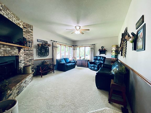 Beautiful brick ranch in town with a wooded backyard view. This 6 bedroom, 2.5 bath home is completely updated, you won't want to change a thing! Coming in from the attached garage is a quaint family room with a gorgeous brick fireplace that has a new, realistic wood fire effect, electric fireplace inset. Kitchen & dining room with sliding doors to the deck. Main living room in the front of the house, down the hall is a full bath with a whirlpool tub, tiled walk-in shower and double vanity, 4 bedrooms including the master suite with a heated floor master bath, walk-in closet, and sliding doors to its own deck. The basement was just finished with 2 bedrooms, large laundry/bathroom, very large family room, and a large storage room. It also walks out to a spacious covered patio. There is an insulated detached garage with new wiring, and steel siding inside and out. All new professional landscaping throughout the yard and completely paved driveway and basketball area.