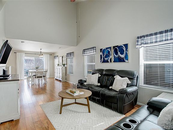 Come and see this charming, ready to go home, ideally located on a quiet street in The Meadows. Walking distance to the elementary school and park, and only a short drive to all the Castle Rock amenities! Upon entering, you'll be greeted by expansive LVP flooring, vaulted ceilings, and an open concept living/dining area that offers endless options for comfortable daily living. The kitchen is spacious and provides lots of storage and prep space, as well as upgraded glass front cabinets and newer stainless steel appliances. The laundry/mud room gives you a great place to drop off coats and shoes, and has a perfectly located half bath. Outside, you'll enjoy a large patio, and no-maintenance turf yard with putting hole. Upstairs, the primary suite is a great getaway, with large walk in closet and ensuite bath. Two additional bedrooms share a full hall bathroom. The air conditioning was installed in 2019, property has xeriscape in the front and back, and includes everything you need to move right in! Welcome home!